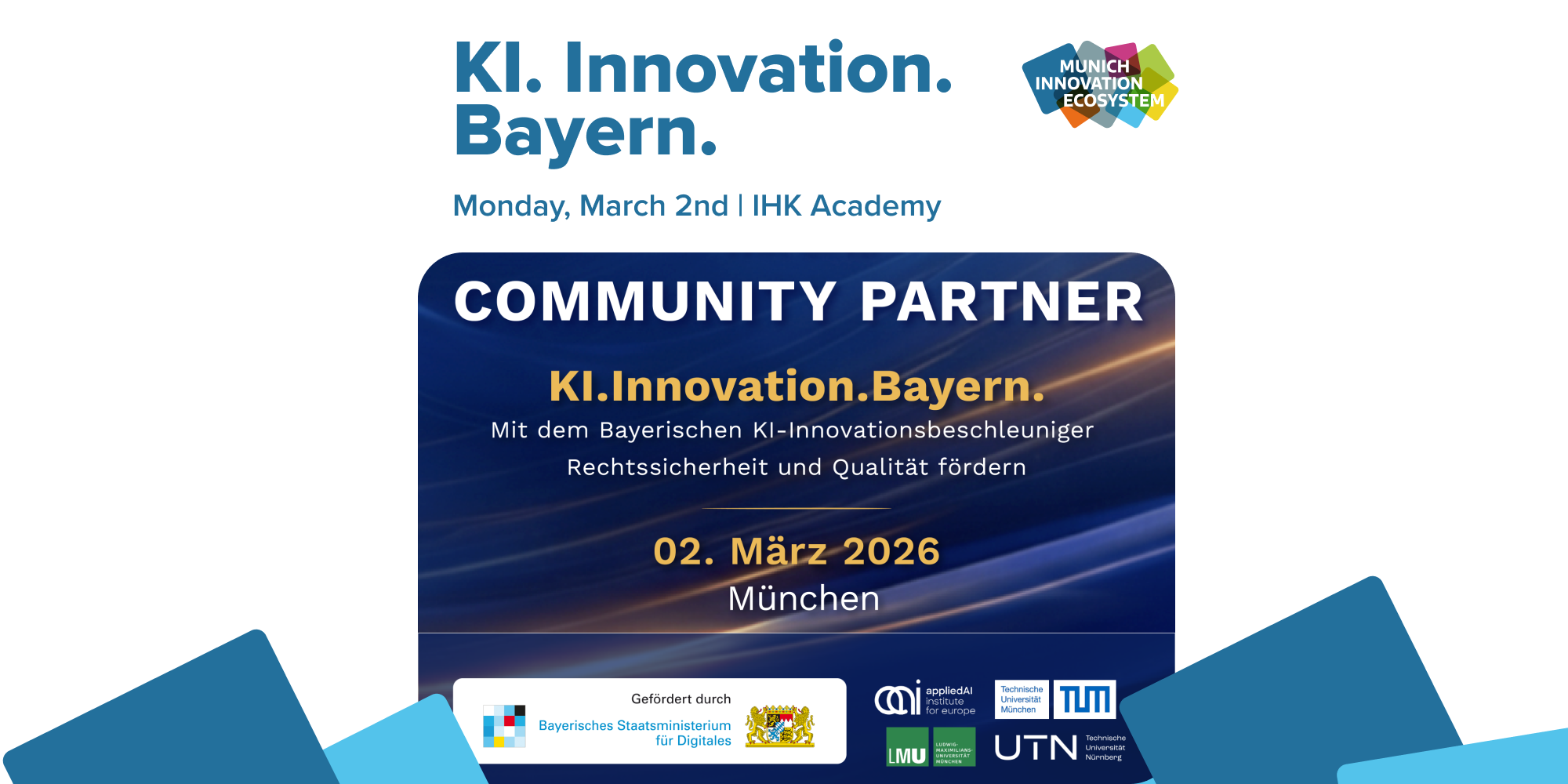 A year full of progress, insights, and impact lies behind Bavaria’s AI ecosystem, now the 𝗕𝗮𝘃𝗮𝗿𝗶𝗮𝗻 𝗔𝗜 𝗜𝗻𝗻𝗼𝘃𝗮𝘁𝗶𝗼𝗻 𝗔𝗰𝗰𝗲𝗹𝗲𝗿𝗮𝘁𝗼𝗿 invites the ecosystem to a full-dayDeep Dive! appliedAI institute for Europe will be hosting, 𝗞𝗜. 𝗜𝗻𝗻𝗼𝘃𝗮𝘁𝗶𝗼𝗻. 𝗕𝗮𝘆𝗲𝗿𝗻. on 𝗠𝗮𝗿𝗰𝗵 𝟮𝗻𝗱, in partnership with Bayerisches Staatsministerium für Digitales, Technische Universität München, Ludwig Maximilian Universität München and Technische Universität Nürnberg. A day that will bring together leading voices from research, industry, andpolicy to shape the future of responsible AI in Europe.